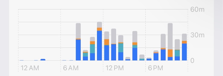 In order to capture the progression of the hours over the course of a day, I would need to use my own data. Since I averaged a daily 7 hours and 8 minutes the last week of November, I was very much in line with the Gen Z average. I spent 7 hours and 3 minutes on Tuesday, so I chose to use the hour-by-hour data from that day: